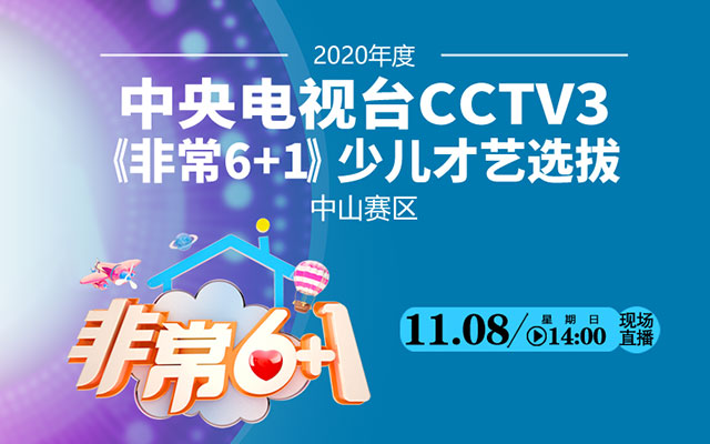 2020年度中央電視臺(tái)CCTV3《非常6+1》少兒才藝選拔中山賽區(qū)開(kāi)賽(第四、第五場(chǎng)),11月8日下午2點(diǎn),中山日?qǐng)?bào)報(bào)業(yè)集團(tuán)中山網(wǎng)全程直播,敬請(qǐng)關(guān)注!