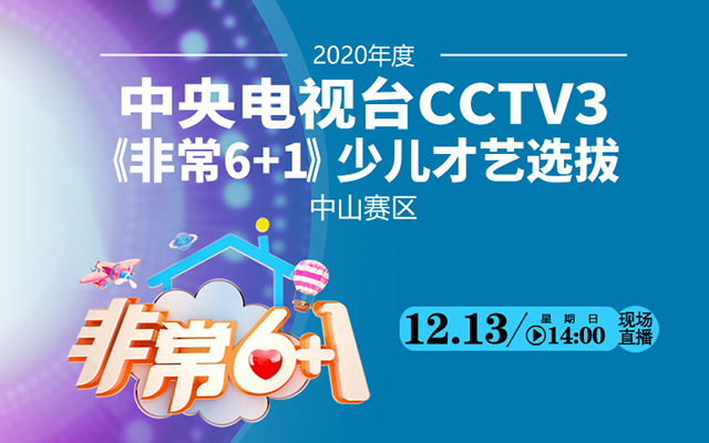 2020年度中央電視臺(tái)CCTV3《非常6+1》少兒才藝選拔中山賽區(qū)復(fù)賽將于12月13日下午2點(diǎn)舉行,中山日?qǐng)?bào)報(bào)業(yè)集團(tuán)·中山網(wǎng)全程直播,敬請(qǐng)關(guān)注!
