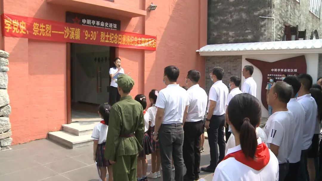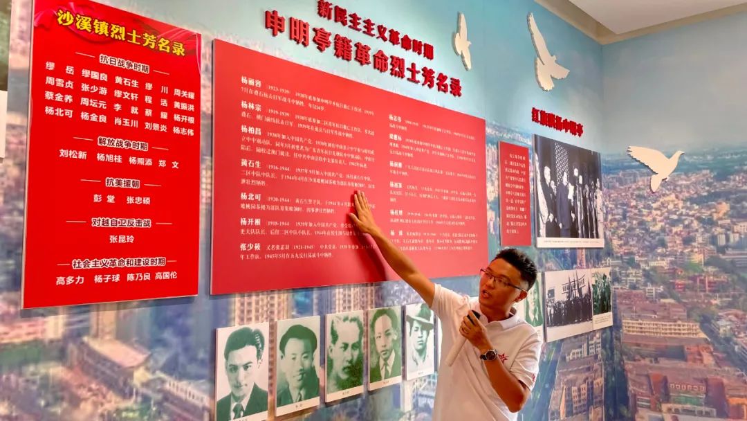 紅色宣講員、沙溪鎮(zhèn)退役軍人紅旗志愿服務隊隊員、申明亭小組工作人員楊健永介紹申明亭烈士生平事跡。