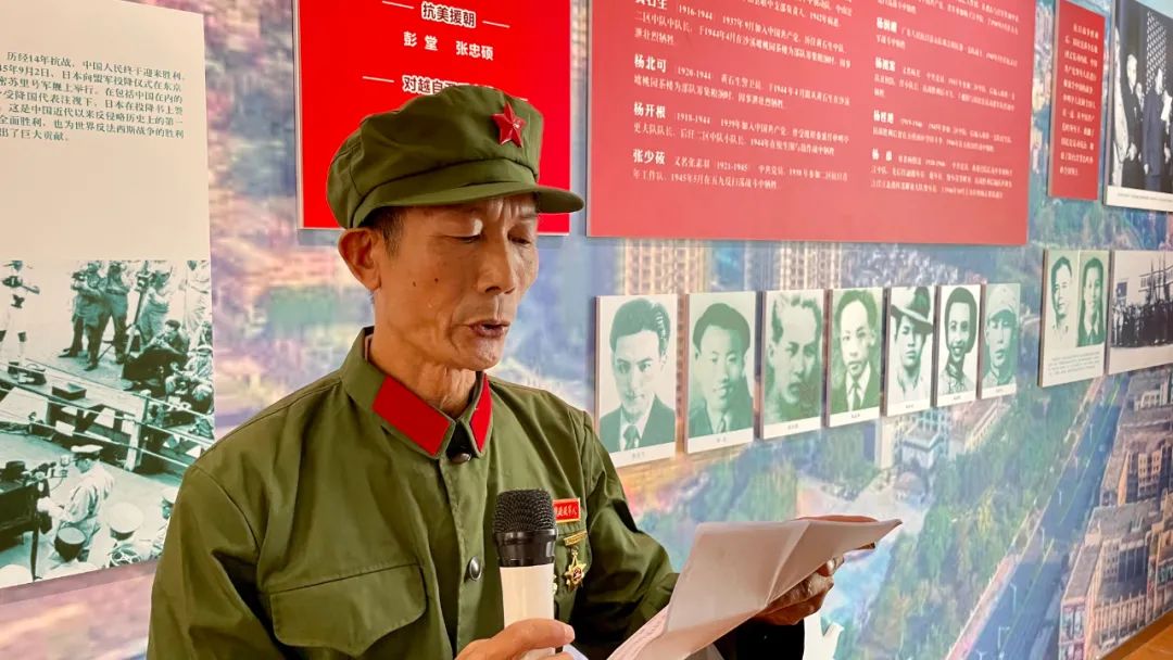 紅色宣講員、沙溪鎮(zhèn)退役軍人紅旗志愿服務隊隊員、退役老兵阮漢英介紹沙溪鎮(zhèn)烈士生平事跡。