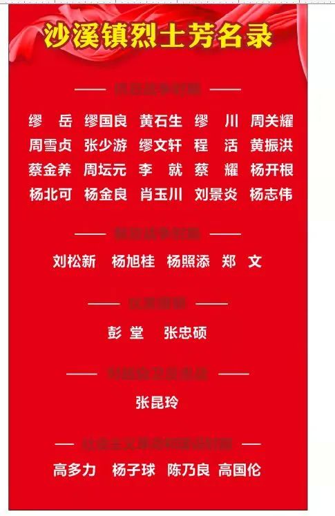 在《中山市民政志》記錄在冊的沙溪鎮(zhèn)烈士共31名。其中抗日戰(zhàn)爭時期20名,解放戰(zhàn)爭時期4名,抗美援朝2名,對越自衛(wèi)反擊戰(zhàn)1名,社會主義革命和社會主義建設時期4名。
