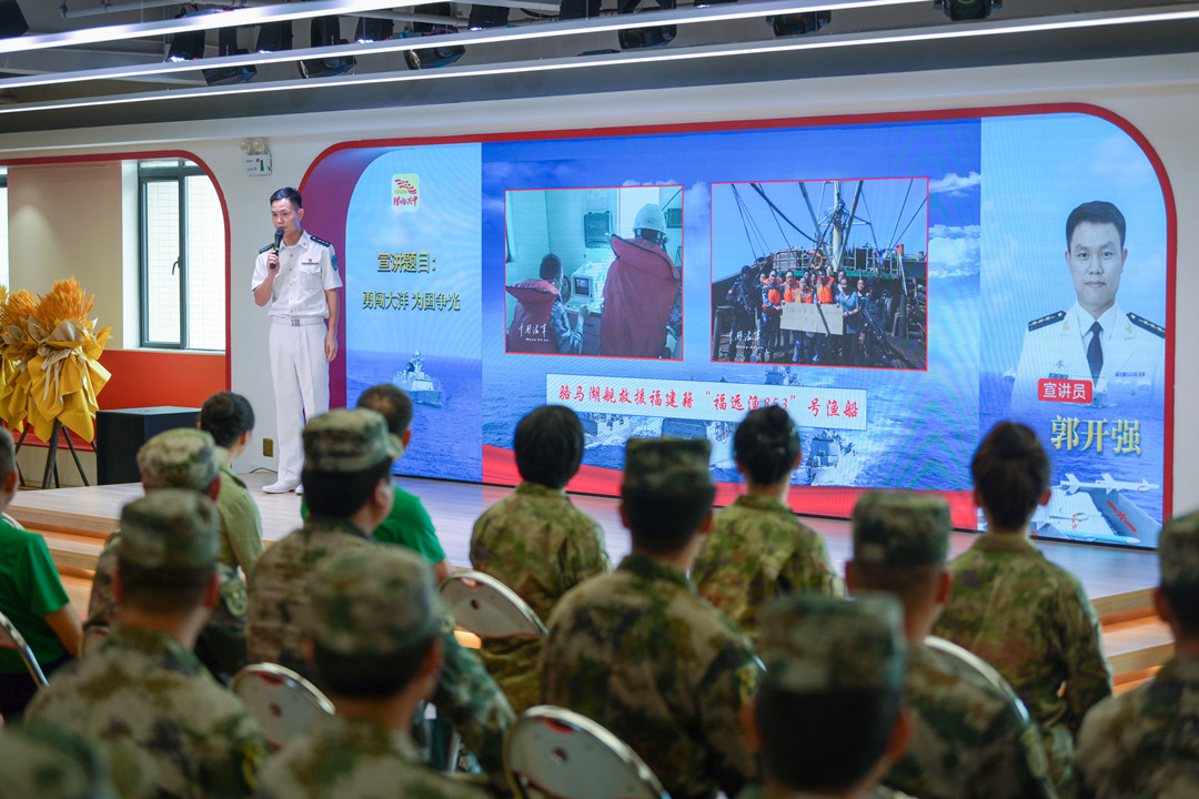 郭開強:勇闖大洋 為國爭光 2008年12月,應(yīng)聯(lián)合國授權(quán)請求,奉中央軍委命令,南海艦隊武漢艦、海口艦、微山湖艦組成第1批護航編隊,拉開了人民海軍舉世矚目的亞丁灣、索馬里護航序幕,這是自600多年前鄭和下西洋以來,中國真正意義上的遠海非戰(zhàn)爭軍事行動,開啟了人民海軍從“黃水”駛向“藍水”的壯麗航程。 91878部隊郭開強干事為大家?guī)碇黝}宣講《勇闖大洋 為國爭光》。 郭開強介紹—— 迄今為止,人民海軍已累計派出44批100余艘次艦艇參加亞丁灣、索馬里海域護航,完成1500多批7000余艘中外船舶護航任務(wù),解救、接護各類船舶近百艘,其中外國船舶超過50%。 護航官兵一次次直面生死、一次次化解危機、一次次挑戰(zhàn)極限,用忠誠與奉獻、責(zé)任與擔(dān)當(dāng),彰顯大國海軍形象,譜寫了人民海軍邁向世界一流海軍的新時代壯歌。 張長城分享軍旅故事。記者 易承樂 攝