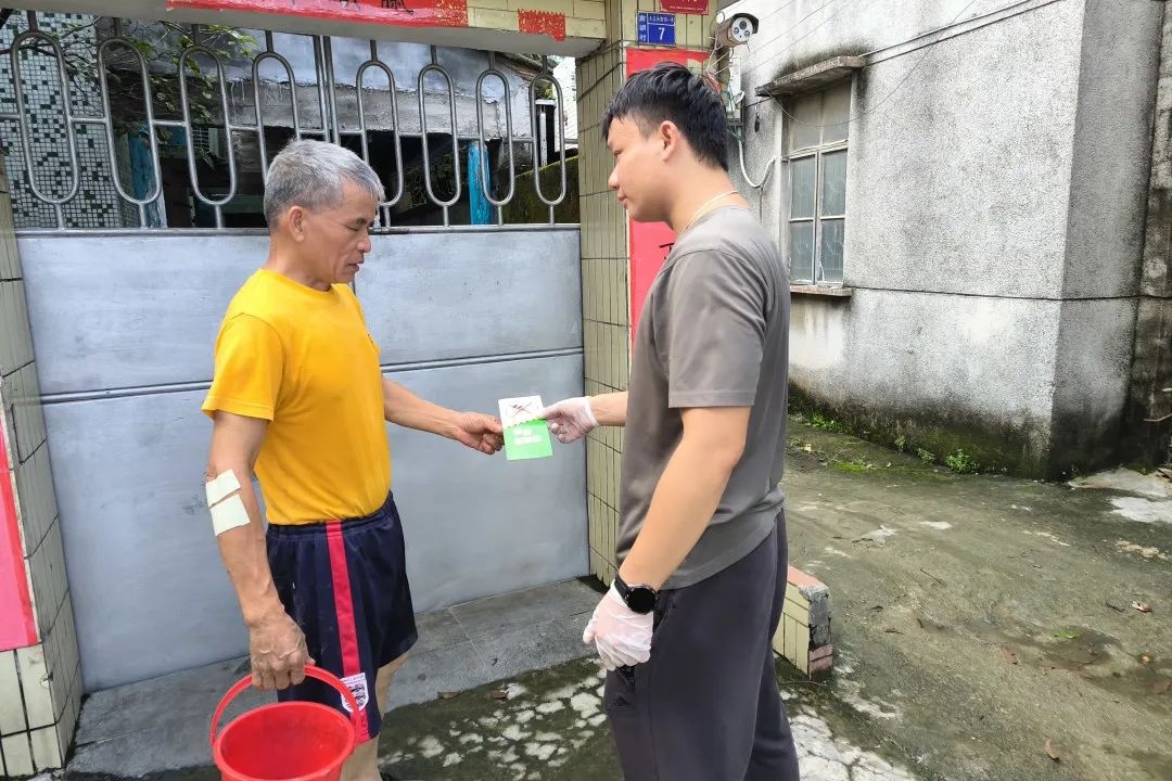 作為曾在廣西防城港部隊駐守過的 “老兵”,嚴兆雄連日來幾乎每天都和村委會工作人員一起走街串巷,排查積水容器、清理衛(wèi)生死角,手機里存著各種 “問題點位” 的照片。嚴兆雄對 “防控” 二字格外敏銳:“基孔肯雅熱、登革熱都是‘防’字當頭,就像當年駐守一樣,得盯著每一個‘漏洞’。” 說著,又發(fā)現(xiàn)一犄角旮旯藏有積水,迅速上前倒掉。曬得黝黑的臉上掛著汗珠,他笑著說,“比起當年站崗,現(xiàn)在為鄉(xiāng)親父老守健康,值得!”