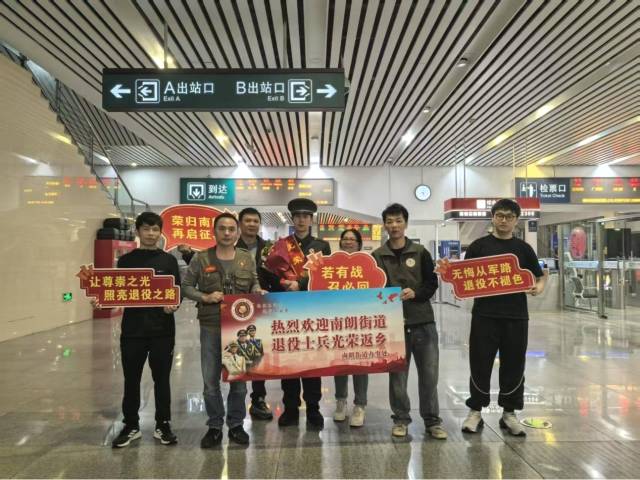 精心組織,讓榮歸之路更有溫度 當(dāng)天,街道退役軍人服務(wù)中心工作人員早早守候在出站口,現(xiàn)場(chǎng)“熱烈歡迎退役士兵光榮返鄉(xiāng)”“榮歸南朗 再啟征程”等橫幅高懸,氣氛莊重而溫馨。當(dāng)身著戎裝、英姿颯爽的退役士兵陸續(xù)走出抵達(dá)通道,等候多時(shí)的工作人員與家屬立即上前,獻(xiàn)上鮮花、披上綬帶,用熱烈的掌聲和親切的問候迎接最可愛的人回家。“辛苦了!”“歡迎回家!”一句句暖心話語(yǔ),驅(qū)散了旅途疲憊,更讓尊崇之光閃耀歸途。 工作人員與退役士兵促膝交談,詳細(xì)詢問服役經(jīng)歷、旅途行程與返鄉(xiāng)規(guī)劃,向他們致以崇高敬意,衷心感謝他們把最美好的青春奉獻(xiàn)給國(guó)防事業(yè),用忠誠(chéng)與擔(dān)當(dāng)守護(hù)萬(wàn)家安寧。 精準(zhǔn)服務(wù),讓政策落地更有速度 為打通服務(wù)保障“最后一公里”,迎接現(xiàn)場(chǎng)同步設(shè)立政策咨詢點(diǎn),工作人員為每位返鄉(xiāng)士兵送上“政策大禮包”,面對(duì)面講解退役軍人優(yōu)待撫恤、就業(yè)創(chuàng)業(yè)扶持、報(bào)到落戶流程、社會(huì)保險(xiǎn)接續(xù)、組織關(guān)系轉(zhuǎn)接、優(yōu)待證辦理等“一站式”服務(wù)事項(xiàng),耐心細(xì)致解答疑問,確保退役士兵“出站即知政策、返鄉(xiāng)即享服務(wù)”,讓暖心服務(wù)貫穿榮歸全程。 “沒想到剛下飛機(jī)就有家鄉(xiāng)人迎接,還送來了這么詳細(xì)的政策指引,太貼心了!”退役士兵們表示,脫下軍裝仍是戰(zhàn)士,回到家鄉(xiāng)將繼續(xù)發(fā)揚(yáng)人民軍隊(duì)聽黨指揮、能打勝仗、作風(fēng)優(yōu)良的光榮傳統(tǒng),盡快轉(zhuǎn)變角色、適應(yīng)新崗,以飽滿熱情投身家鄉(xiāng)建設(shè),在新的征程上再立新功。