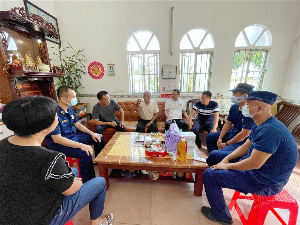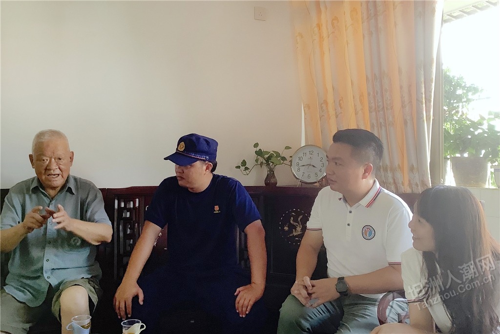 隨后,慰問組還邀請(qǐng)參戰(zhàn)老兵鄭金洪走進(jìn)中山市消防救援支隊(duì)坦洲大隊(duì)講述革命故事,給與會(huì)黨員干部和部分基干民兵送上了一堂生動(dòng)、鮮活的紅色教育黨課,讓全體人員感受參戰(zhàn)老兵的精神洗禮。“在一次部隊(duì)作戰(zhàn)時(shí),我和另一名貴州籍的戰(zhàn)友去攻打一個(gè)火力點(diǎn),我們一起在山腳的一塊石頭處掩護(hù),但根據(jù)我以往的作戰(zhàn)經(jīng)驗(yàn),我覺得這里不安全,于是趕緊對(duì)他說不要待在那塊石頭那,也不要站立,趕緊滾到下面的公路去;好在他聽從我的命令后,迅速地做出反應(yīng)。當(dāng)我們到達(dá)安全地方時(shí),長(zhǎng)舒一口氣,一直聽到有子彈嗖嗖嗖地從那塊石頭附近穿梭而過;而那位戰(zhàn)友感慨地跟我說‘班長(zhǎng),好在你迅速做出反應(yīng),不然我在那不是受傷就是死了?!编嵔鸷橐杂H身經(jīng)歷聲情并茂地向大家講述了當(dāng)年戰(zhàn)火紛飛的戰(zhàn)斗經(jīng)歷。 ▲慰問組一行聆聽烈士遺屬陳北根講述他父親生前與敵斗爭(zhēng)的英雄故事。
