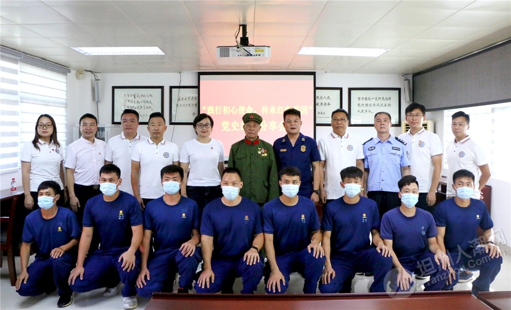 感人至深的英雄事跡,使與會(huì)黨員干部沉浸其中,深刻感受到了每一枚紅色勛章所承載的歷史記憶。中隊(duì)消防員、坦洲鎮(zhèn)民兵海防巡邏排排長(zhǎng)黃俊謙說:“聆聽了鄭叔生動(dòng)的紅色故事,我備受鼓舞,作為一名基層消防員和民兵骨干,在今后的工作中我要發(fā)揚(yáng)革命前輩的優(yōu)良傳統(tǒng),爭(zhēng)做時(shí)代新人,為坦洲消防救援事業(yè)和海防應(yīng)急搶險(xiǎn)工作貢獻(xiàn)自己的青春和熱血!” ▲與會(huì)人員和參戰(zhàn)老兵鄭金洪合影留念