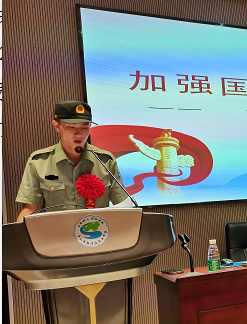 隨后,退役軍人事務(wù)中心陳偉樂開展了“加強國防教育 強化國防觀念”主題宣講活動,他從提高警惕、勿忘國恥、崇尚軍人、樹立軍魂等方面強調(diào)師生們要加強國防觀念。