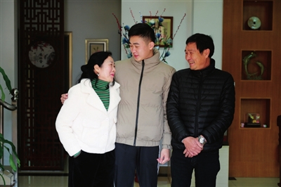 南朗“準(zhǔn)新兵”程俊楠(中)和父母的合照。本報(bào)記者 易承樂(lè) 攝