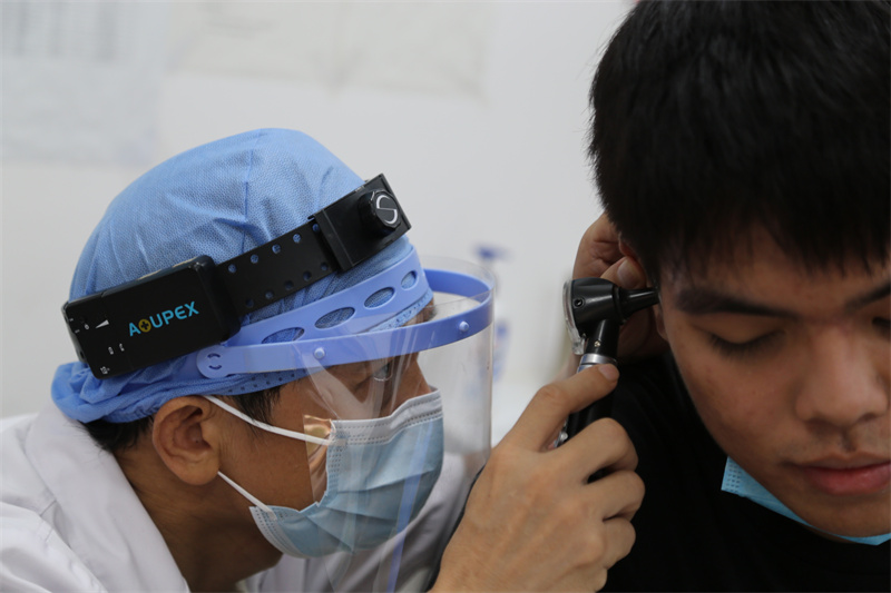 南區(qū)醫(yī)院抽調(diào)各業(yè)務科室30余名骨干組成征兵體檢隊,嚴格按照征兵體檢程序和規(guī)范組織開展兵檢工作,對照《應征公民體格檢查標準》,有序開展五官、血壓、聽力、視力、內(nèi)外科等檢查項目。整個體檢過程嚴謹細致,努力篩選出身體素質好的優(yōu)秀青年輸送到部隊。 現(xiàn)場還舉行征兵啟動儀式,參檢人員逐一在現(xiàn)場報名板上鄭重簽下自己的姓名。來自城南社區(qū)的大學畢業(yè)生黃堅高興奮地表示,這是自己第三次參加征兵體檢了,之前的身體問題已經(jīng)通過治療糾正,希望這次體檢能順利通過,能用學識和智慧為國防事業(yè)貢獻力量,在軍營綻放熱血青春。  ▲現(xiàn)場舉行了簡單的啟動儀式