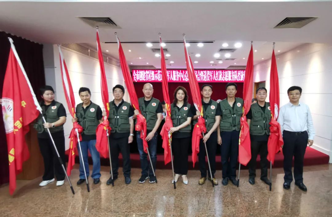 同時,還為全市26支退役軍人紅旗志愿隊進(jìn)行授旗。
