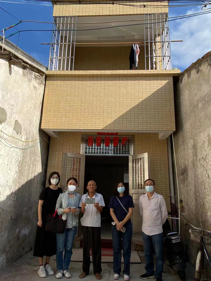 這是中山市退役軍人事務部門開展2022年退役軍人危房改造的一個縮影。據(jù)悉,中山市連續(xù)14年累計投入近億元為1200多戶優(yōu)撫對象改造危房,聚焦著力解決他們住房安全短板,確?!袄嫌兴樱佑兴鶚贰?。相關工作經驗得到了廣東省退役軍人事務廳的專門推介。  沙溪鎮(zhèn)退役軍人劉叔在新房前開心地展示門牌號。 (市退役軍人事務局供圖)