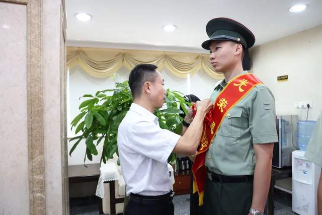 儀式現(xiàn)場(chǎng),街道領(lǐng)導(dǎo)為退役士兵逐一佩戴象征榮譽(yù)的大紅花,致敬他們?yōu)閲朗聵I(yè)作出的貢獻(xiàn)。