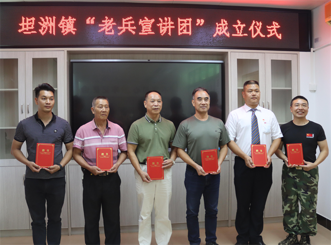 7月26日,中山市坦洲鎮(zhèn)成立全市鎮(zhèn)街首個“老兵宣講團(tuán)”。中山市退役軍人事務(wù)局、中山市退役軍人服務(wù)中心,坦洲鎮(zhèn)公共服務(wù)辦公室、退役軍人服務(wù)中心等單位相關(guān)負(fù)責(zé)人,坦洲鎮(zhèn)“老兵宣講團(tuán)”成員等出席成立儀式。 成立儀式現(xiàn)場,坦洲鎮(zhèn)退役軍人服務(wù)中心負(fù)責(zé)人簡要介紹了“老兵宣講團(tuán)”成立的目的、任務(wù)及宣講團(tuán)成員的基本情況。相關(guān)領(lǐng)導(dǎo)為“老兵宣講團(tuán)”授旗,并頒發(fā)聘用證書。  ▲坦洲鎮(zhèn)老兵宣講團(tuán)成員獲頒聘書。