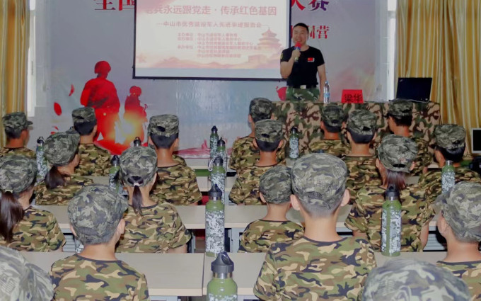 老兵鄭容添表示,老兵宣講團(tuán)是一個學(xué)習(xí)的平臺,加入宣講團(tuán)對個人來說是一種義務(wù)與責(zé)任,成員們將不忘初心,牢記使命,為坦洲的國防和青少年成長教育盡一點(diǎn)微薄之力,為坦洲和美發(fā)展講好優(yōu)良傳統(tǒng)和革命故事,激勵青少年健康成長。 “老兵宣講團(tuán)”各成員在現(xiàn)場分享退役后工作和創(chuàng)業(yè)經(jīng)歷,介紹了開展各類志愿活動的故事。老兵們的好經(jīng)驗(yàn)、好做法讓大家很受啟發(fā)。 坦洲鎮(zhèn)公共服務(wù)辦公室負(fù)責(zé)人表示,退役軍人為國防和軍隊建設(shè)作出了重要貢獻(xiàn),是社會主義現(xiàn)代化建設(shè)的重要力量,是黨和國家的寶貴財富。組建“老兵宣講團(tuán)”開展紅色宣講活動意義重大,要結(jié)合在“八一”“國慶”“黨的二十大”等重要時間節(jié)點(diǎn),有計劃地開展“老兵宣講團(tuán)”進(jìn)學(xué)校、進(jìn)社區(qū)、進(jìn)農(nóng)村、進(jìn)機(jī)關(guān)、進(jìn)企業(yè)等宣講活動,大力弘揚(yáng)優(yōu)秀退役軍人的先進(jìn)事例,營造崇軍優(yōu)屬的良好社會氛圍,為全鎮(zhèn)經(jīng)濟(jì)社會發(fā)展凝聚強(qiáng)大力量。 當(dāng)天下午,“老兵宣講團(tuán)”成員梁華來到坦洲鎮(zhèn)雛鷹國防教育研學(xué)基地,為開展夏令營軍訓(xùn)的60余名學(xué)生上了一堂生動的愛國主義教育課。梁華結(jié)合自身16年的軍旅生涯向?qū)W生們普及國防教育知識,講述強(qiáng)軍興軍歷史及中國軍人的職責(zé)和使命,讓孩子們近距離感受軍人氣質(zhì)和榮耀,增強(qiáng)他們強(qiáng)國強(qiáng)軍、保家衛(wèi)國的責(zé)任感和使命感。  ▲“老兵宣講團(tuán)”成員梁華給學(xué)生上國防教育課。