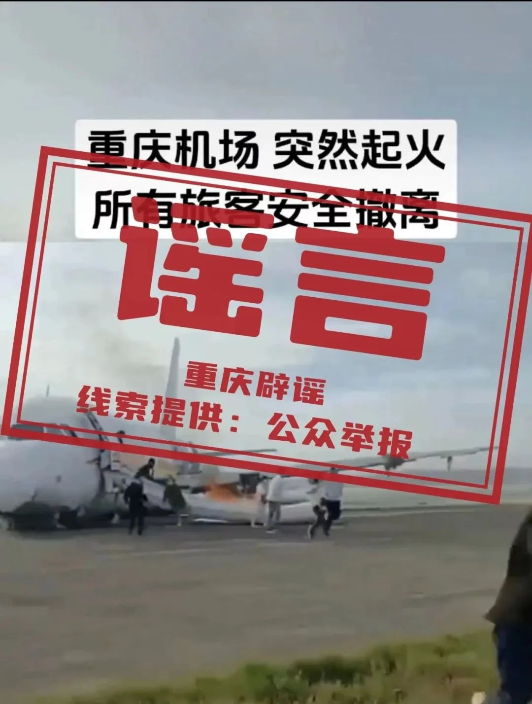 網(wǎng)傳信息為發(fā)布于某網(wǎng)站平臺(tái)的一條短視頻,視頻畫(huà)面顯示一客機(jī)停放在飛機(jī)跑道上,不少乘客正從飛機(jī)客艙中跑出,并配文稱(chēng)“重慶機(jī)場(chǎng)突然起火,所有旅客安全撤離”。