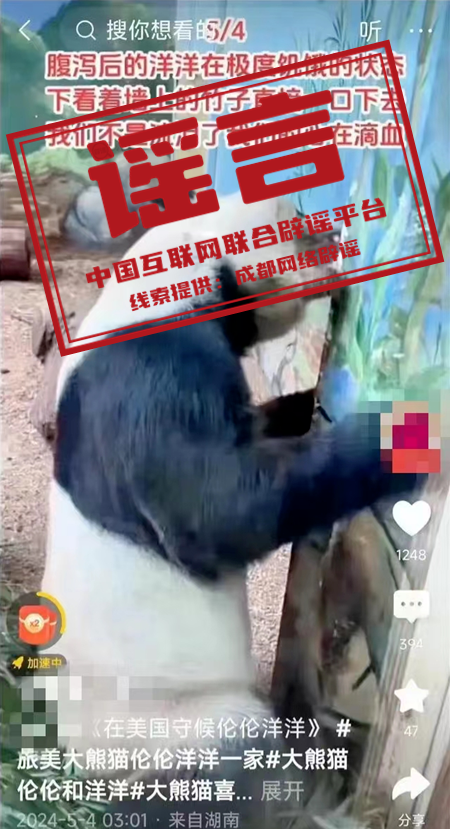 謠 言 旅美大熊貓“洋洋”口吐白沫、餓得啃墻皮?
