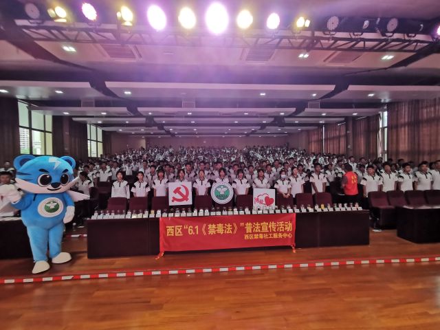 活動過程中,西區(qū)禁毒社工以禁毒故事真人圖書館的形式,向學生們介紹了毒品的來歷,再結合現(xiàn)場講解毒品知識,通過有獎問答環(huán)節(jié)讓同學們深刻的認識到毒品對個人、家庭以及社會帶來的嚴重危害,增強拒毒、防毒的能力,為打贏新時代禁毒人民戰(zhàn)爭貢獻力量。隨后禁毒社工帶領全體學生進行莊嚴宣誓,宣誓完畢后,社工利用禁毒模具現(xiàn)場為學生們講解毒品種類和危害,分享戒毒康復實例,西區(qū)街道禁毒社工讓學生們在互動過程中潛移默化學習禁毒基本知識,寓教于樂。