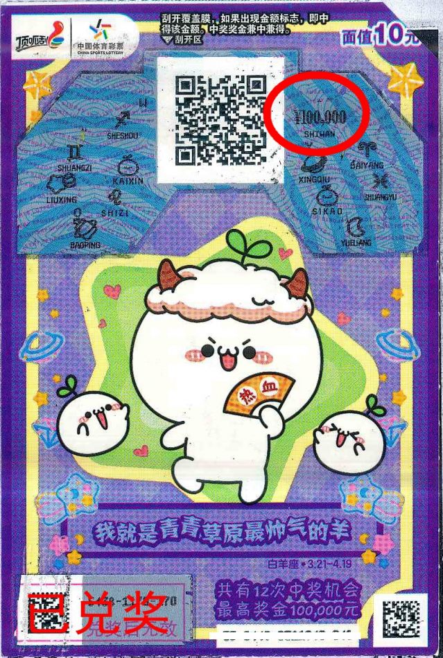 另一位幸運(yùn)者來自中山市南區(qū)槎橋路朗晴假日17幢2卡的4418018278體彩實(shí)體店內(nèi)。購彩者趙先生(化名)以10元面值的體彩頂呱刮十二星座票種,獲得了最高獎(jiǎng)金10萬元,為地方貢獻(xiàn)稅金2萬元。