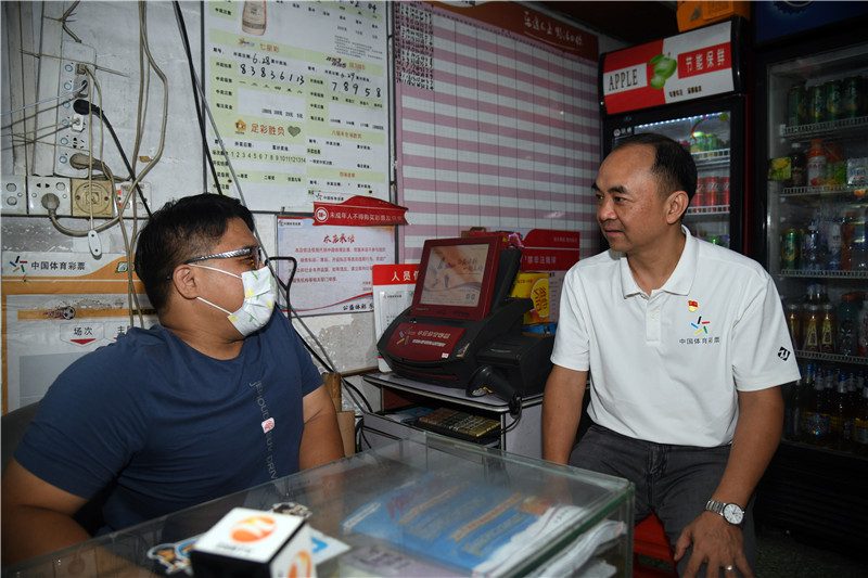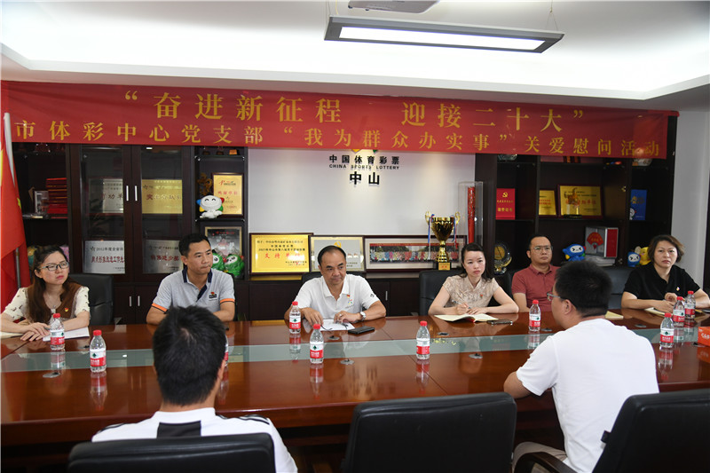 ▲中山體彩黨支部全體黨員與困難實體店代銷者進行座談。